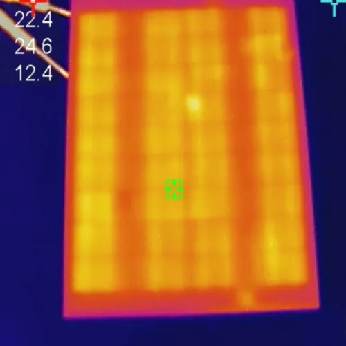 Use an infrared thermal imager to photograph photovoltaic modules and observe the temperature distribution on the module surface through infrared thermal images. Hot spots appear as high-temperature areas and can be detected and located using thermal images. Depending on the performance and quality of the modules, shading may reduce output power, affect power generation, or even lead to module burnout. Therefore, hot spot shading detection can effectively assess module operating efficiency.