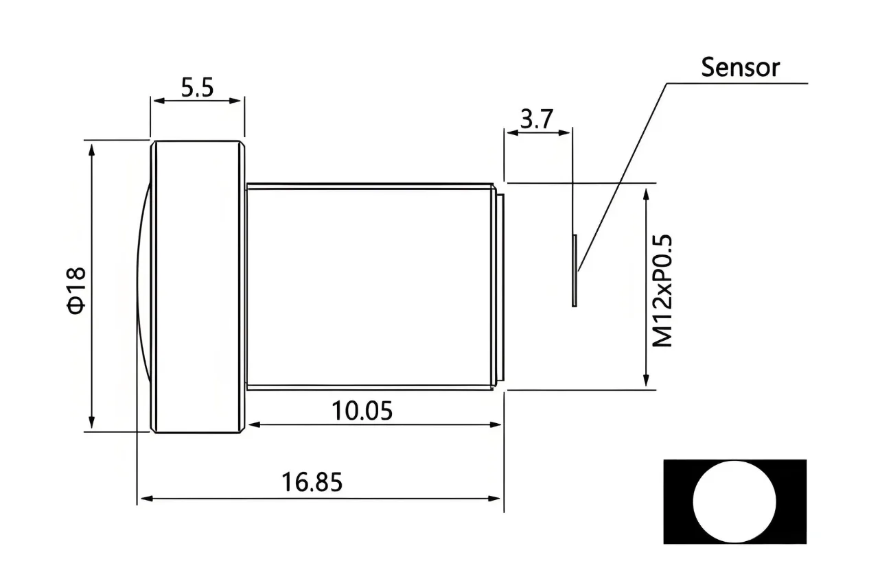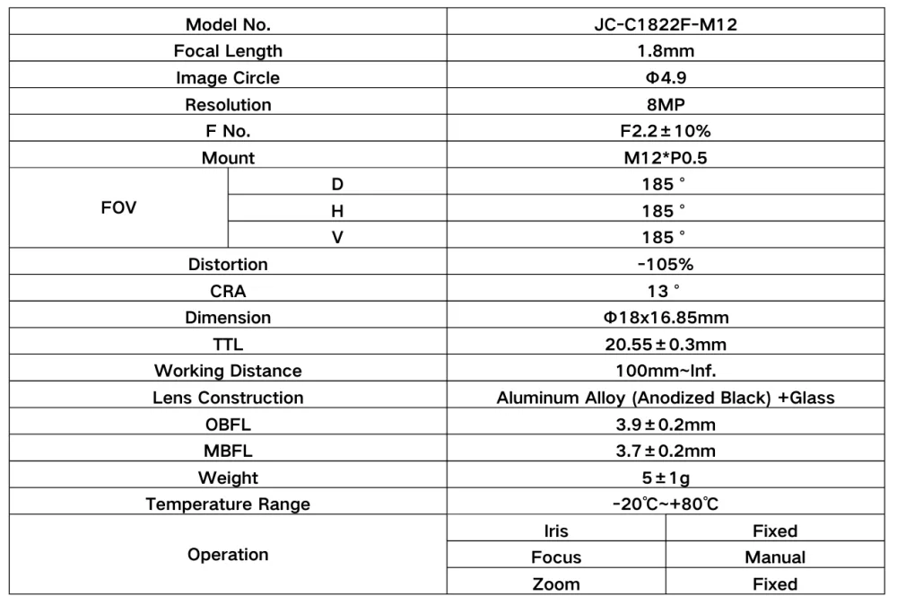 φ4.9mm | 1.8mm | F2.2±10%| M12-Mount | – 8MP M12 Lens