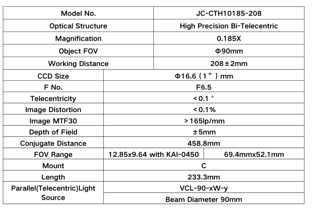 1″ | 0.185X | F6.5 | 5mm – High Precision Bi-Telecentric Lens
