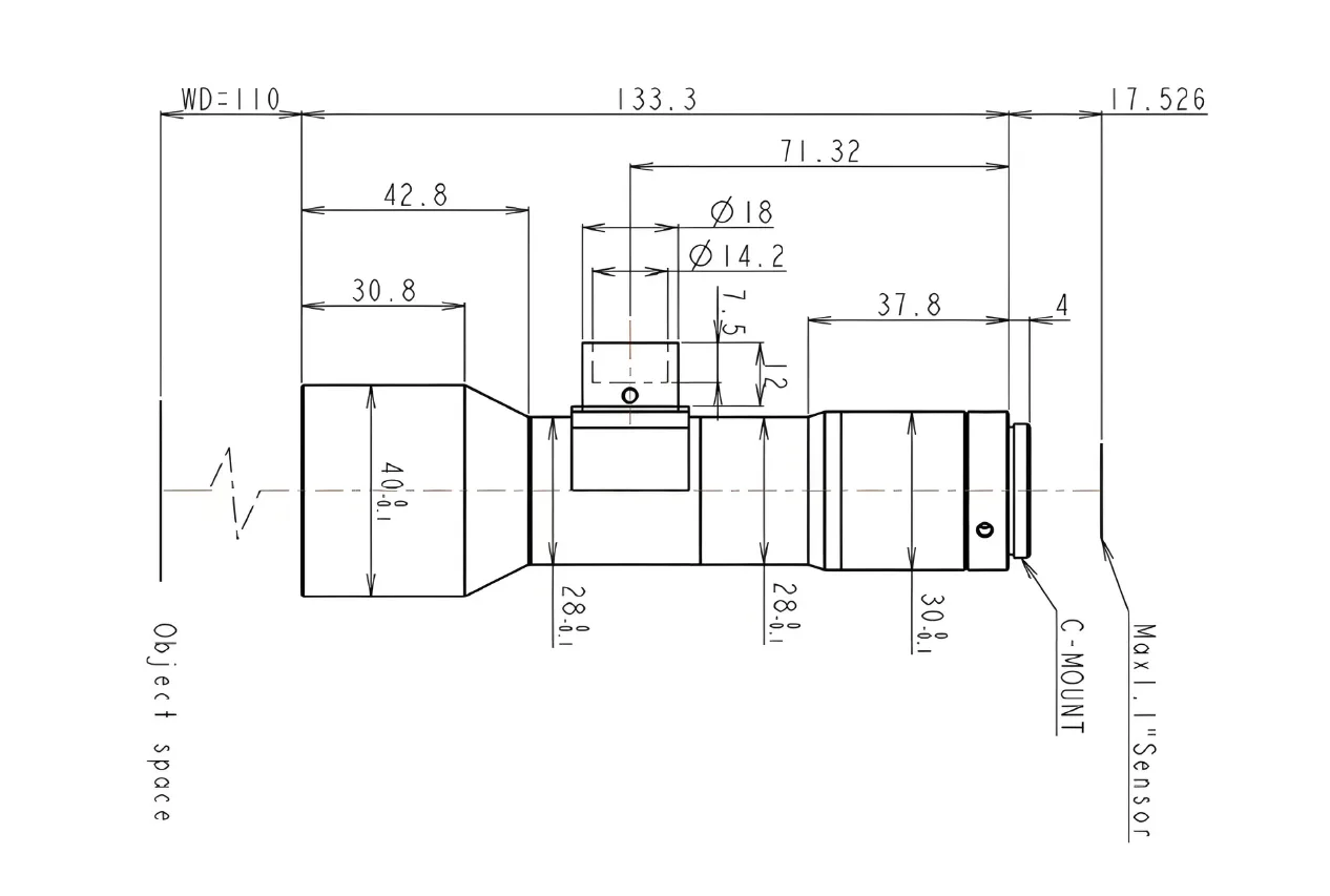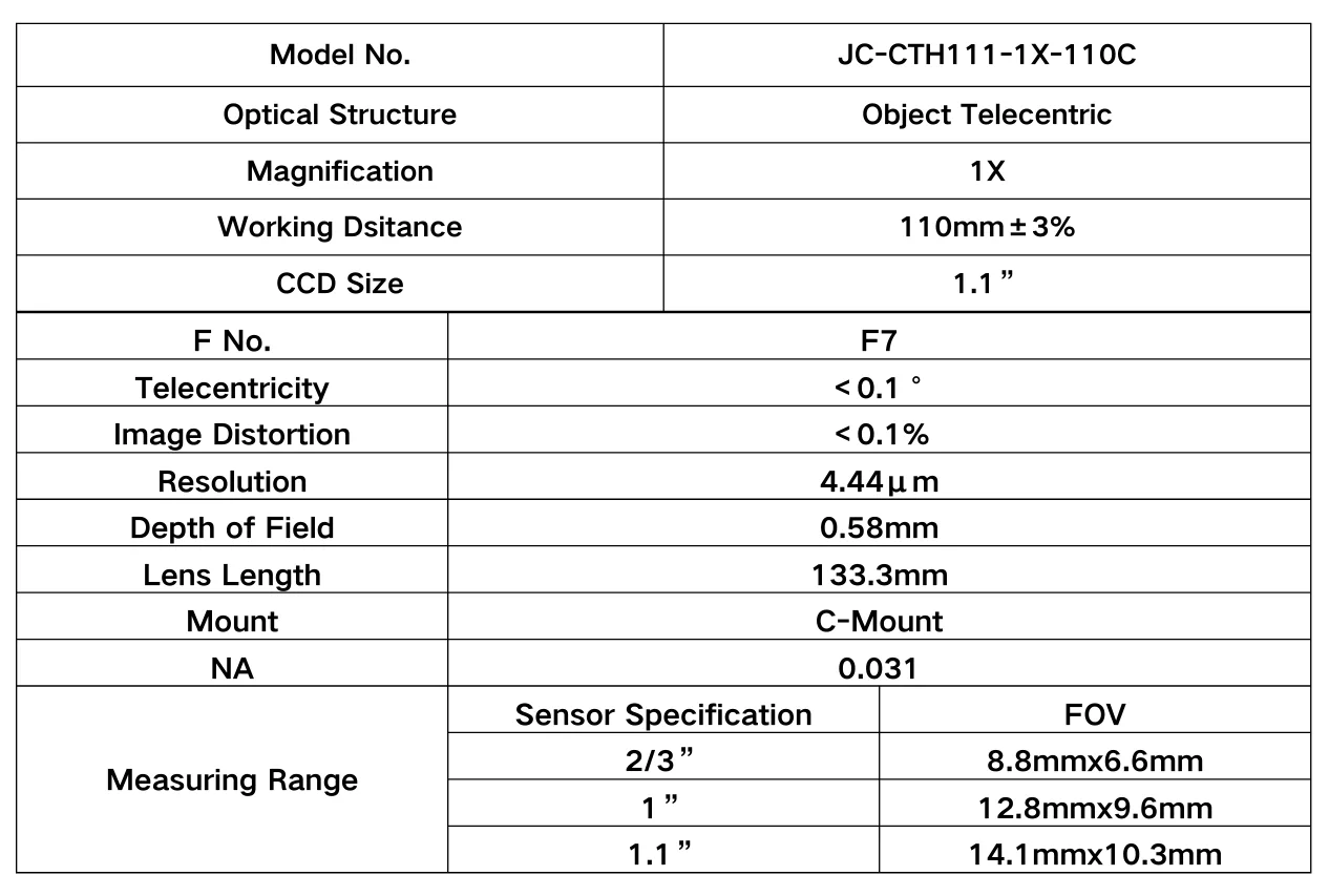 1.1″ | 1X | F7 | 0.58mm – Object Telecentric Lens