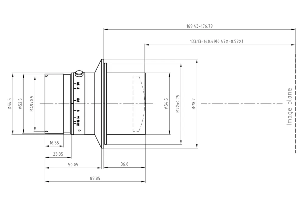 135mm | 0.47X-0.52X | F3.5 | M72 – 16K Large Format Line Scan Lens