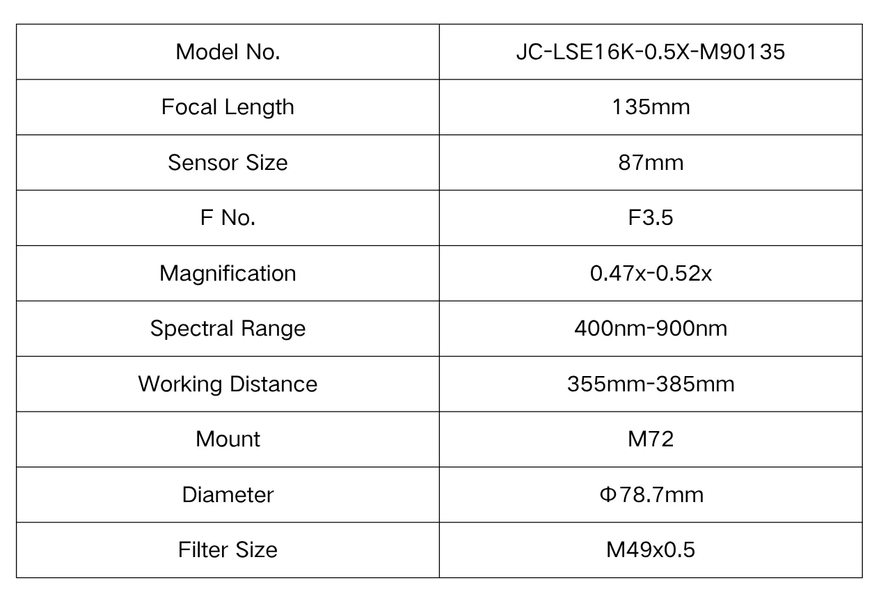 135mm | 0.47X-0.52X | F3.5 | M72 – 16K Large Format Line Scan Lens