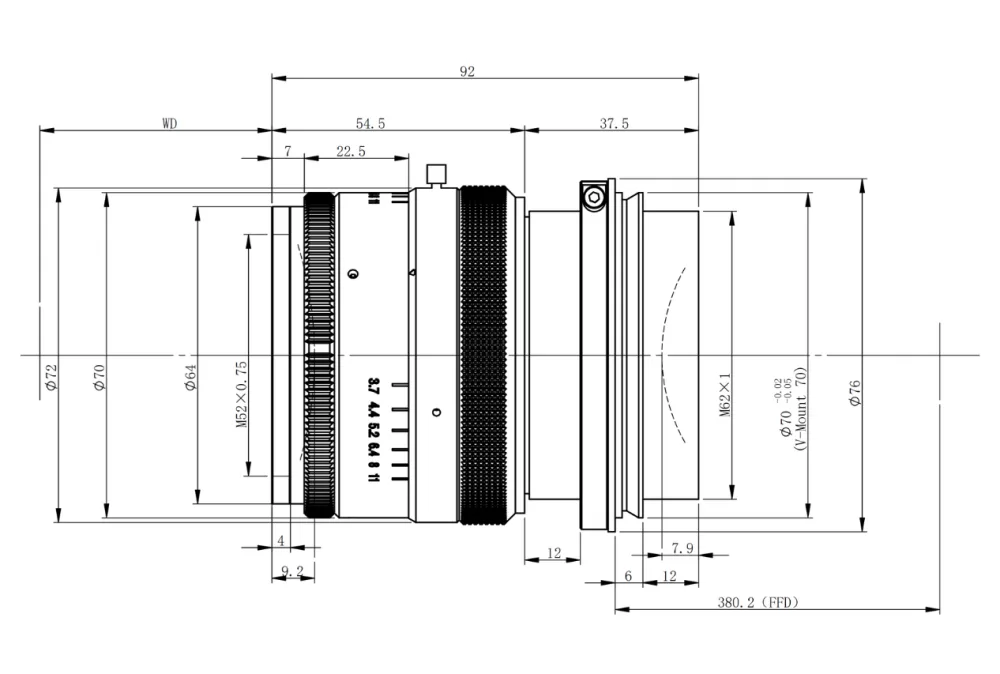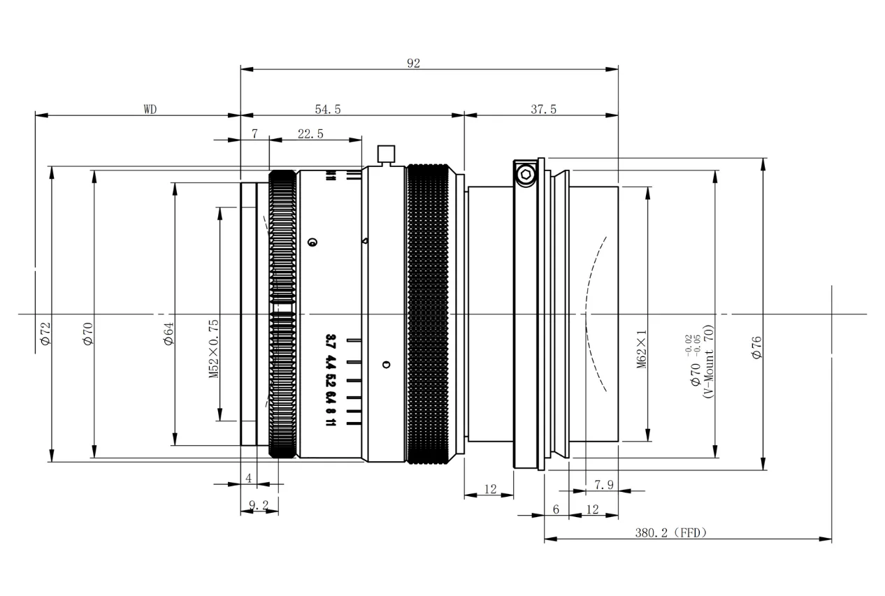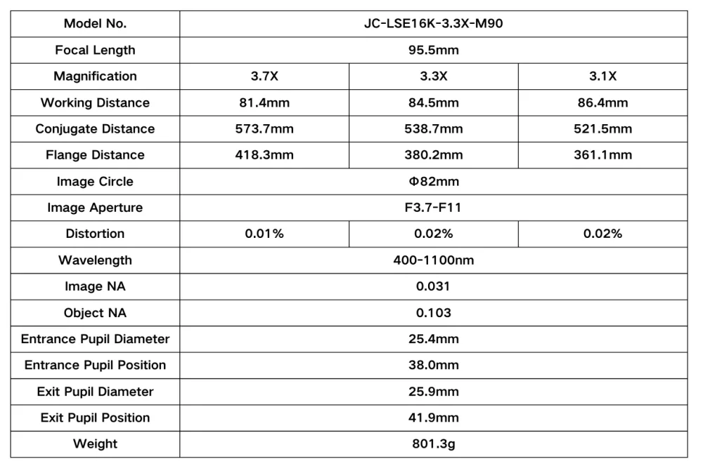 95.5mm | 3.1-3.7X | F3.7-F11 | φ82mm – 16K5μ Large Format Line Scan Lens