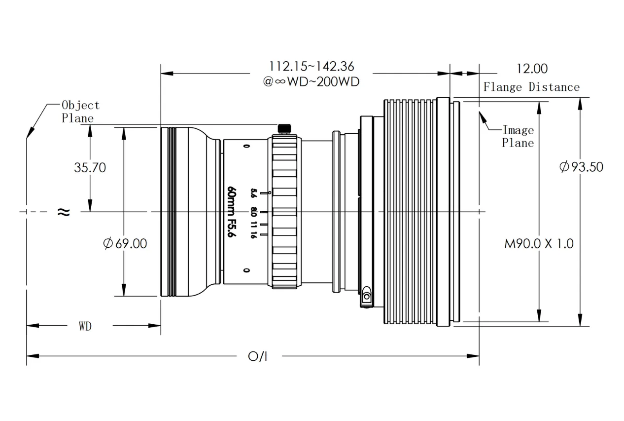 60mm | φ82mm | F5.6 | M90/M72 – 16K5μ Line Scan And Large Format Lens